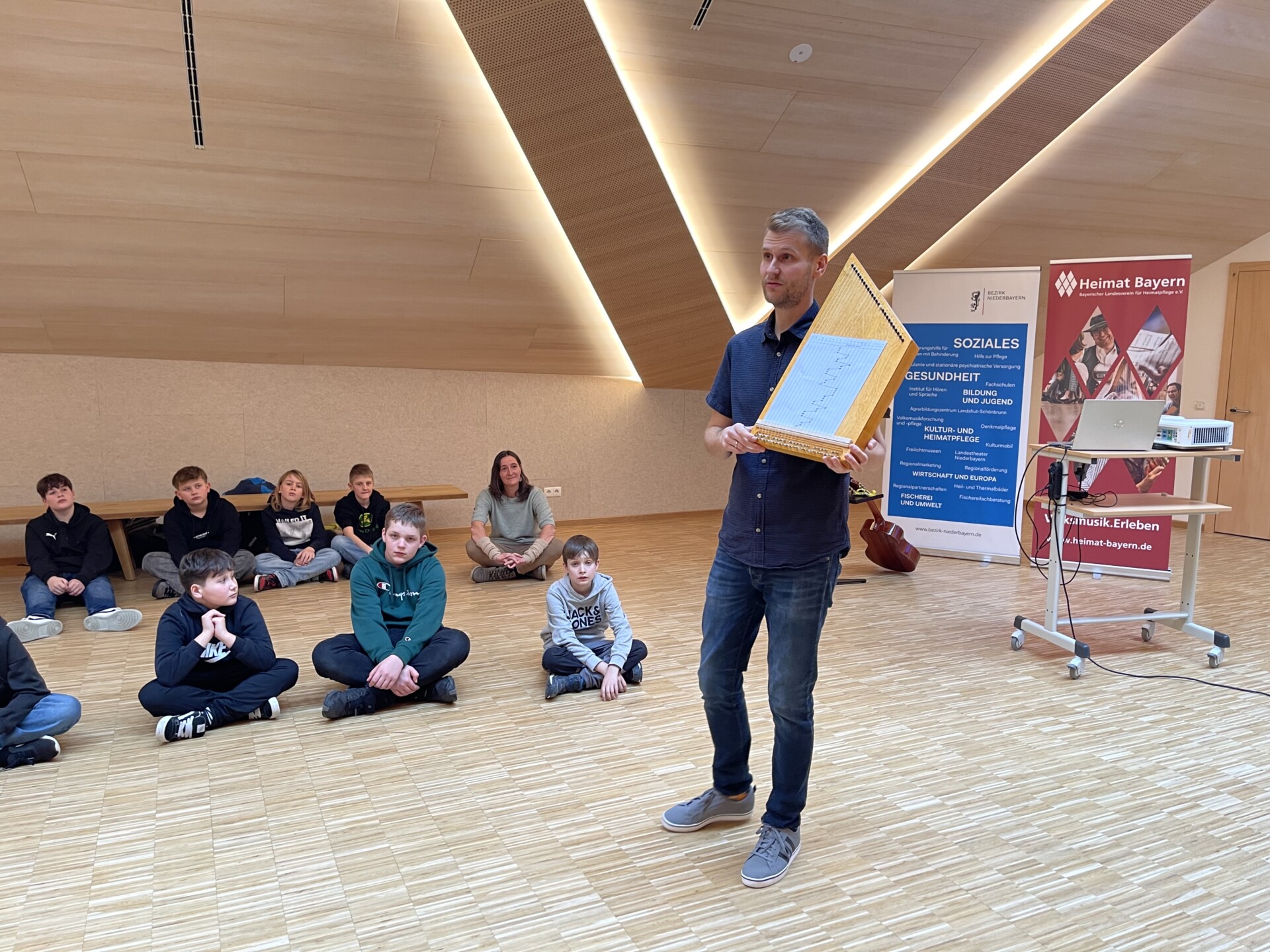 Der Musikpädagoge Dominik Hilgart hat an der in Freyung beheimateten „Volksmusikakademie in Bayern“ das Projekt „Regionale Musik für alle“ der Öffentlichkeit präsentiert. Mit Kindern der 5. Klasse der Realschule Freyung führte er vor, wie er Mädchen und Buben mit Instrumenten vertraut macht und wie sie sich fürs Tanzen und Singen begeistern lassen. Hilgart ist als Referent für Volksmusik beim Bayerischen Landesverein für Heimatpflege beschäftigt und leitet das Projekt „Regionale Musik für alle“. Es richtet sich an Gruppen aus ganz Bayern. Bei der Präsentation des Projektes, das der Landesverein mit Unterstützung des Heimatministeriums an der Volksmusikakademie weiterführen kann, traten Vertreter von Institutionen auf, die das Projekt ebenfalls unterstützen. Im Folgenden geben wir ihre Stellungnahmen wieder:
